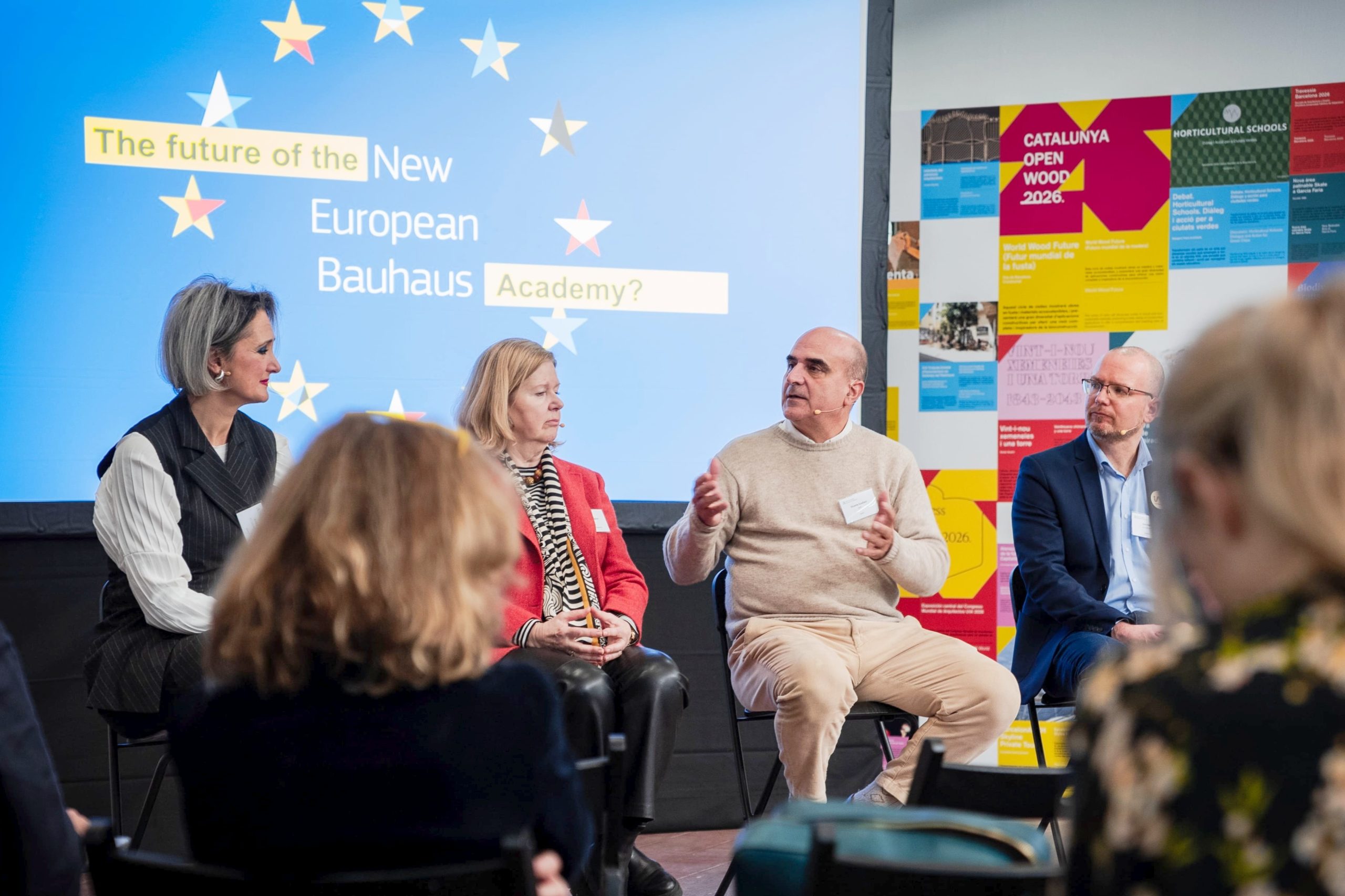 On 27 February 2026, over 80 participants from across Europe gathered in Barcelona for the 1st New European Bauhaus Academy Conference on “Knowledge, Skills, and Innovation in Sustainable Construction for a Resilient Future of Europe”. The event brought together educators, trainers, researchers, architects, innovators, and policymakers, all committed to accelerating the sustainable transformation of Europe’s built environment. The conference showcased plenty of good practices in skills and training for sustainable construction and opened a strategic reflection on the NEB Academy’s future role as a comprehensive support system for creating beautiful, regenerative, and inclusive neighbourhoods across Europe. The event was part of the UNESCO-UIA Barcelona 2026 World Capital of Architecture programme and co-hosted by the Institute for Advanced Architecture of Catalonia (IAAC), InnovaWood, and the University of Primorska,